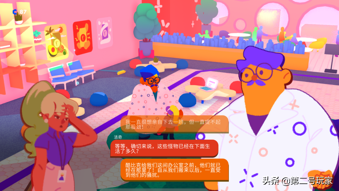 于是当实习生洁奇闯进这里的时候,这位名为卡费因的(前)老板还在跟他的怪物员工开会,并且就公司出现的“带薪拉屎”现象做出指示: