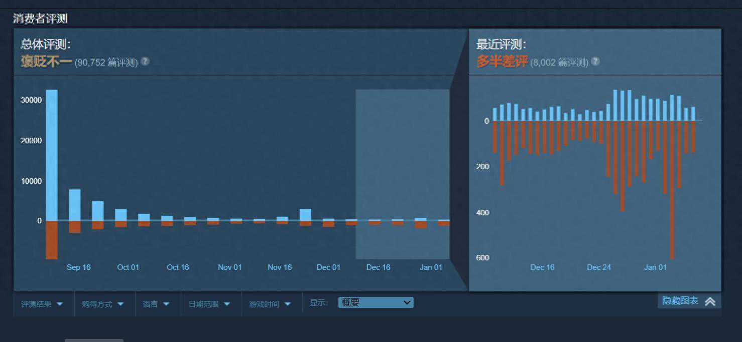 目前,该游戏已收到超过9万条评价,其中超过40%为负面评价。然而,这些评价似乎很快失去了真实性,因为其中许多评价都基于最简单的理由攻击游戏。