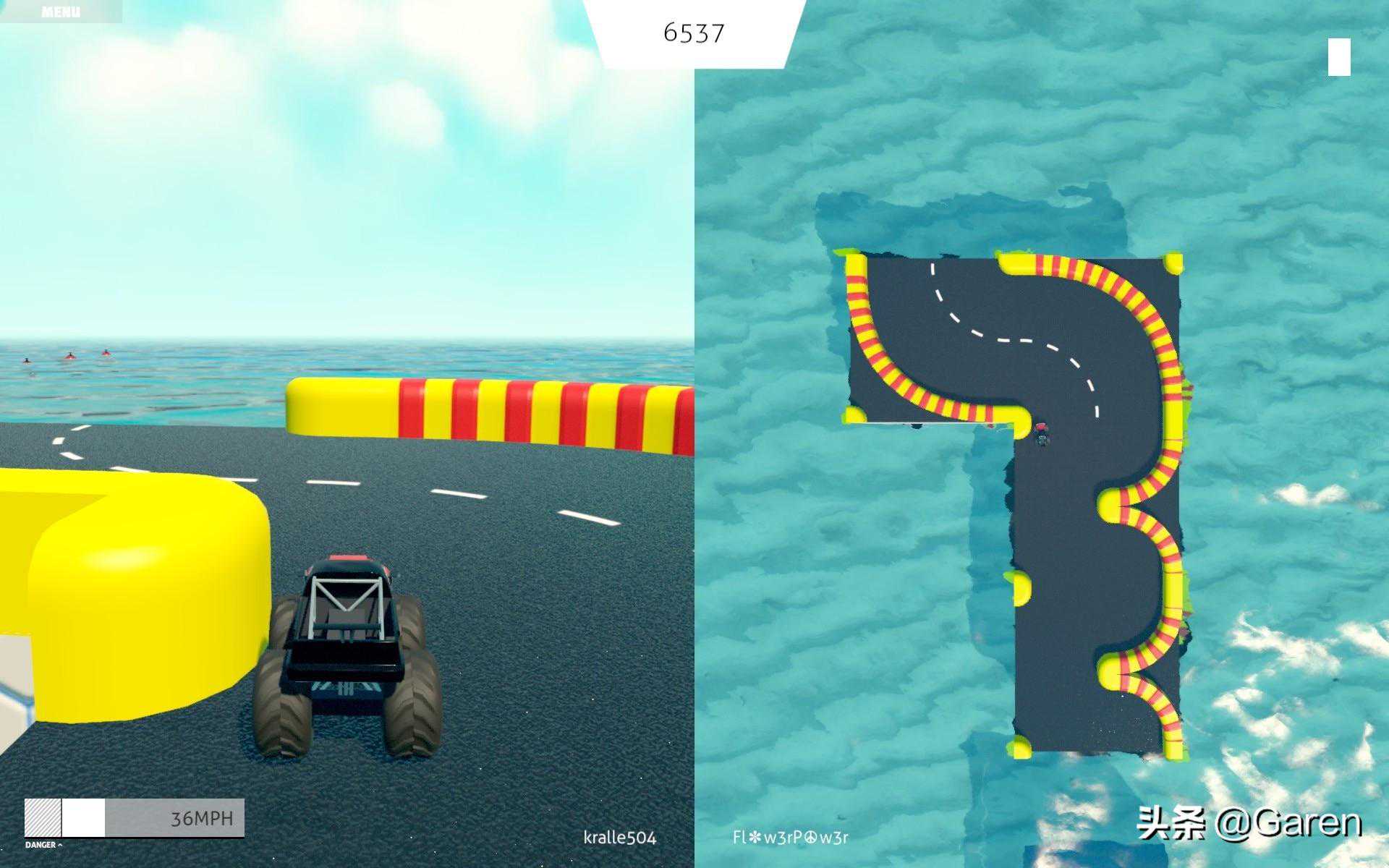 一款颇为有趣新颖的合作向的多人赛车游戏,非常适合和朋友一同游玩。游戏中需要两名或者多名玩家分饰两职:驾驶员和建造者,建造者负责用方块铺路,而驾驶员需要让大脚车保持一定的速度前进,一旦车速过慢车辆便会直接爆炸,若是掉出跑道同样也会失败。游戏最大的亮点便是精妙地分屏将建造者的操作页面与汽车的运动画面放在了同一个屏幕内,看起来感觉很简单但其实玩起来经常会因为配合的问题导致崩盘,可以说是一款十足的结合了赛车与建造于一身的“友谊翻船模拟器”。