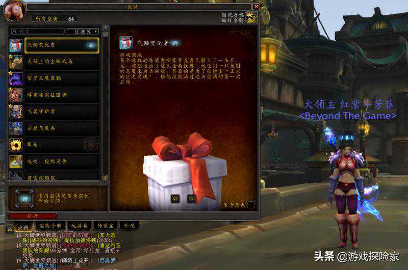 先上线正式服,登上小探的大领主,会看到坐骑栏已经多了一个扎着可爱蝴蝶结的礼物包。