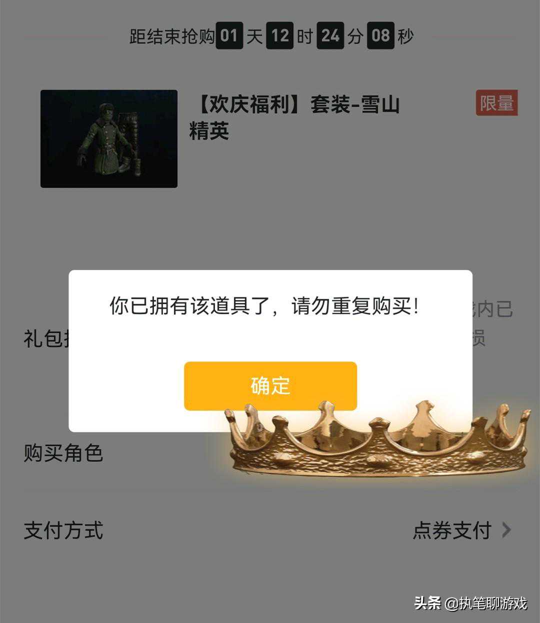 据这位玩家称,自己因为没有“帽子”,虽然不影响“小吉利”的发挥效果,毕竟平时都戴头盔,但是在游戏大厅里看着有些不对劲儿,所以准备兑换一整套,但是却弹出“你已拥有该道具了,请勿重复”的提醒。