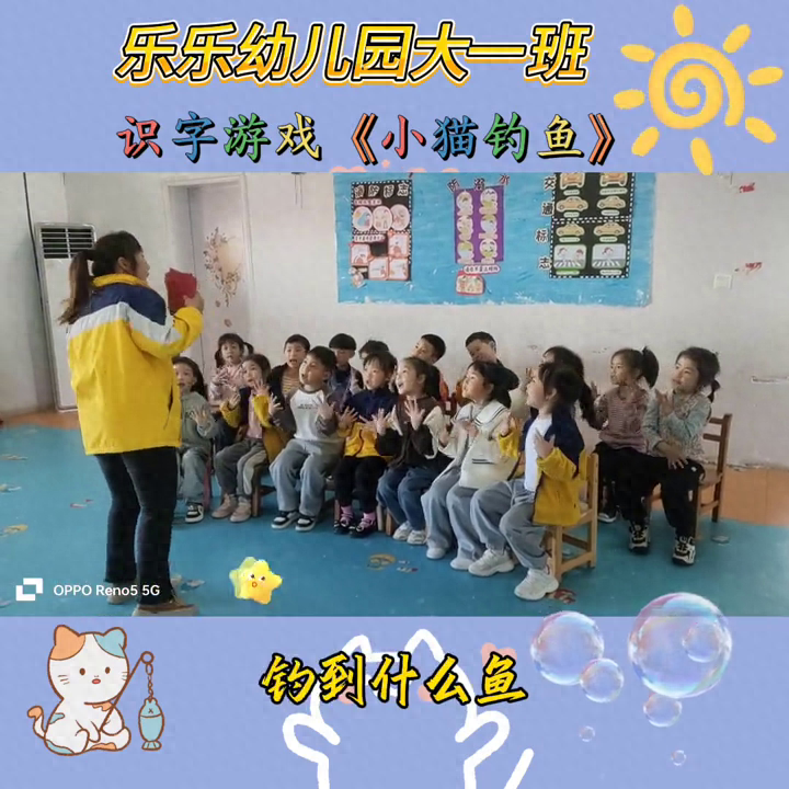 乐乐幼儿园大一班识字游戏《小猫钓鱼》,汉字游戏《小猫钓鱼》。