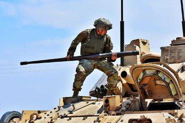 ▲乘员正在为25毫米机关炮换装炮管,M2系列从A0发展的还没有面世的A4,25毫米机关炮从来没有被改动过,最多就是改改火控系统,尽管美军之前已经试验了35毫米和45毫米的机关炮,可见美军对这门机关炮还是比较满意的