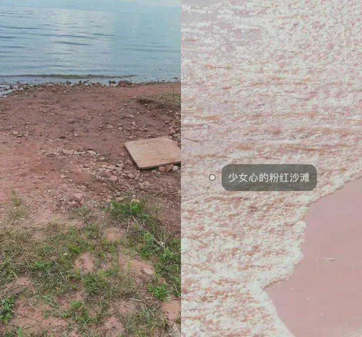 云南澄江抚仙湖岸边的照片被剪辑得很漂亮,但当游客看到实物时却大失所望:沙滩不粉,绿地非常光秃秃的。