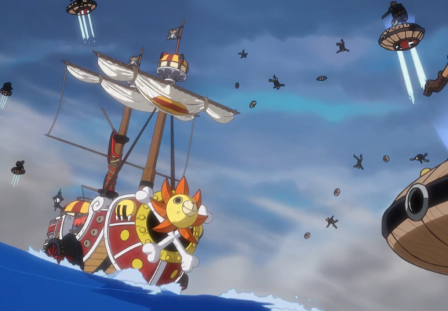 路飞与女帝带回了足够的可乐路飞也在西德尔的身上拿到了海贼世博会的邀请函,而被女帝石化的众人好多是被胁迫所以也解开了石化,最后与家人重新团聚。最后路飞以直男告别,说完两句话,如旋风般的跑了,跑了。在路飞回到阳光号后,与众人说出海贼万博会后,决定向德尔塔岛出发。