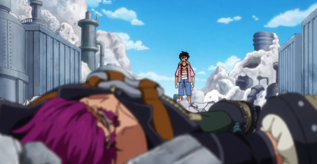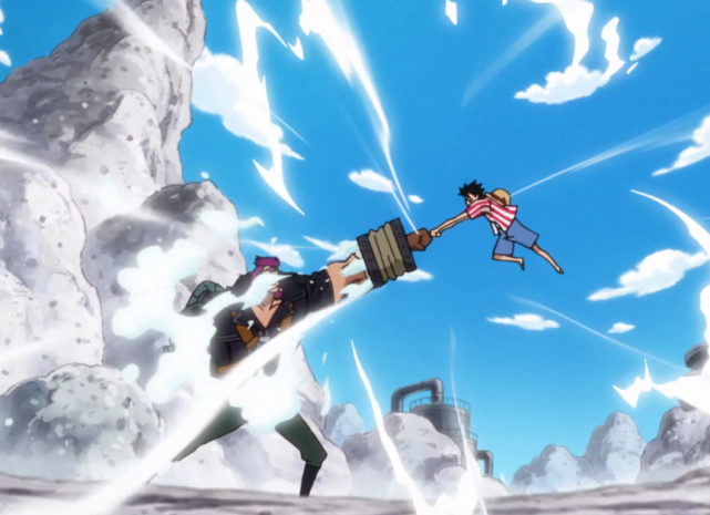 西德尔重击,路飞格挡,橡胶手枪反击,机关枪,而后以及反弹完胜