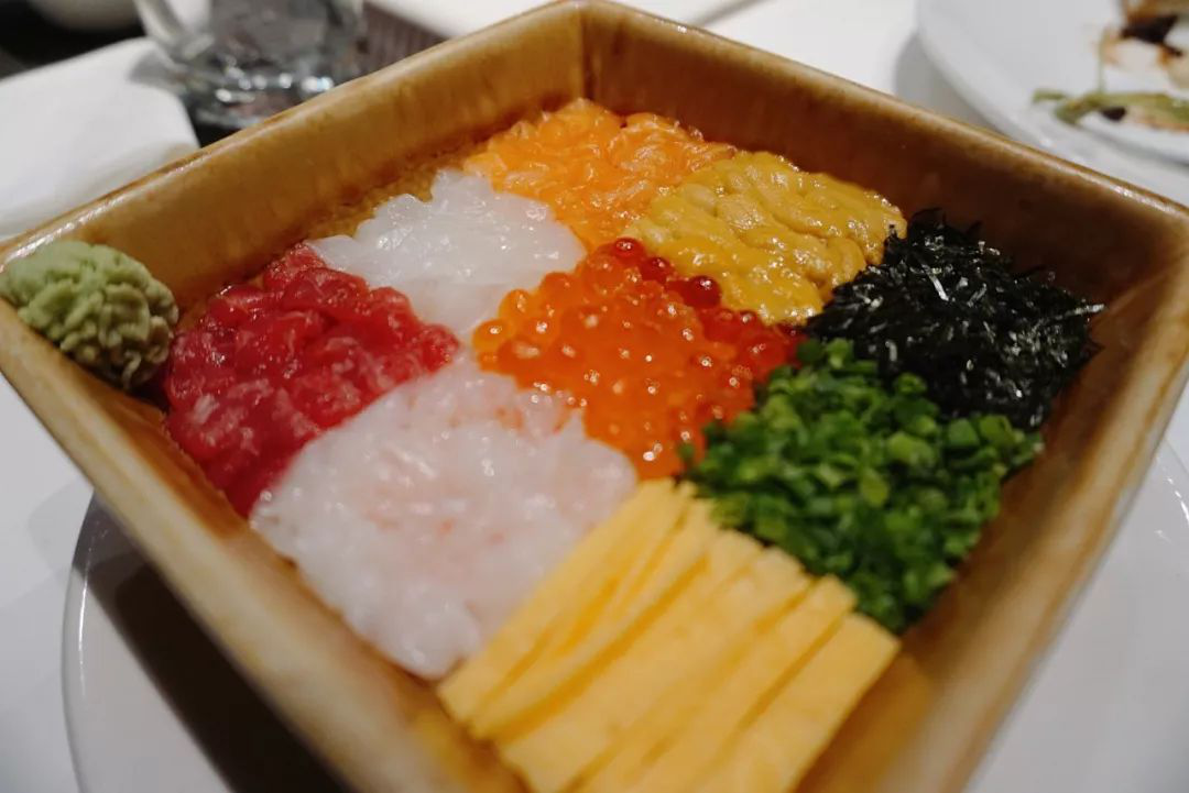 备受好评的一道必点菜,像是在玩连连看有木有?由金枪鱼、墨鱼、三文鱼、甜虾、鱼籽、海胆等多种海洋深处的食材组合而成,下面是寿司饭,严格的1:1造型,瞬间治愈了处女座同志们。