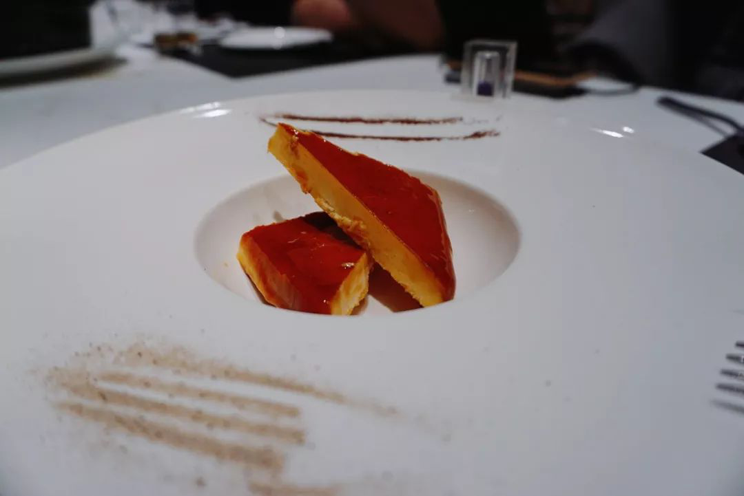 在老板的安利下,我们点了这道焦糖甜品,一刀子下去,身边一米八的小哥哥都有些吃力,因为实在是硬啊,可是,吃到嘴里的一瞬间,冰糕就立马融化在舌尖,焦糖的甜和冰淇淋的缜密,给人一种在吃刺身的错觉。旁边的沙漏提醒你,最佳品味时间:5min。