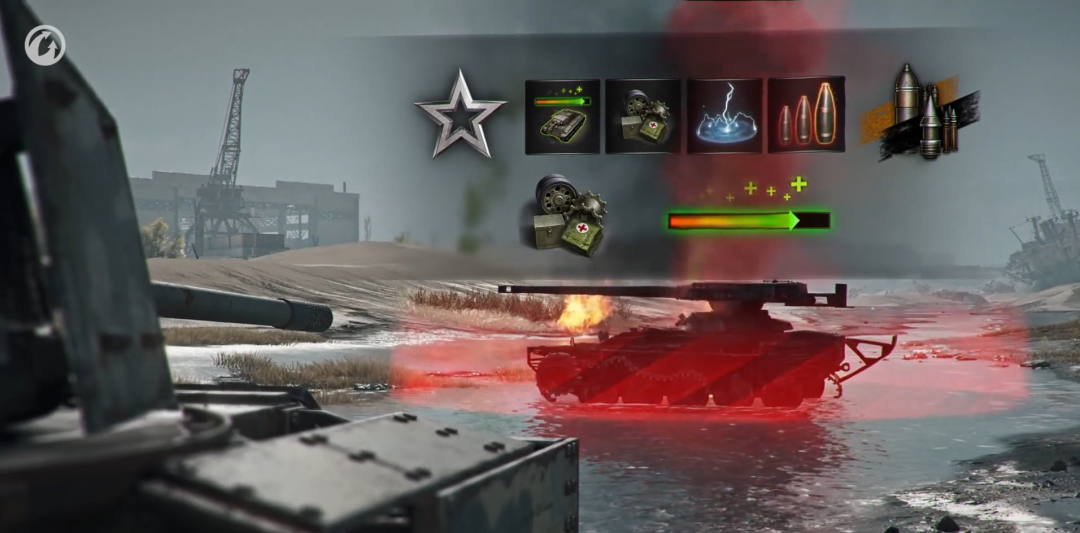 可获得内容:大量经验、回血、修复坦克模块、弹药、每个技能各一个