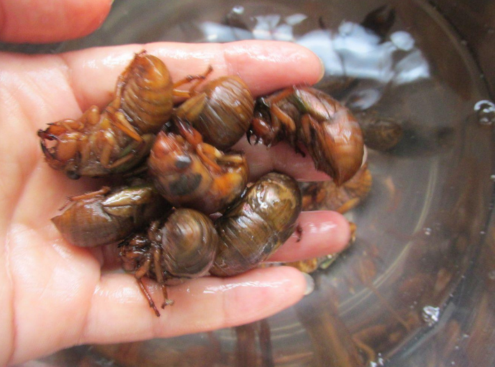 知了龟,我们老家鲁南地区也叫“结了龟”,鲁西南地区叫“知了猴”,是雌蝉产的卵在土里长成的幼蝉。雌蝉的卵一般产在树木嫩枝的下端,产卵后雌蝉用口器刺破一圈树皮,使嫩枝断绝水分和养料供应枯死后落入地下,这时孵化出来的幼蝉就钻入土里。幼蝉在土里生活周期很长,最短的也要2至3年,一般为4至5年,最长的为17年。在土里要经过4至5次蜕皮,一边生长一边打洞,成熟后才能钻出地面完成最后的金蝉脱壳,化为成蝉。
