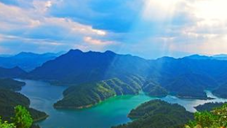 赐福湖水深处不可测,右岸丘峻连绵,花木四季不败,左岸石山重叠,千姿百态,是乘舟、垂钓、游览库区新村和湖光山色的理想胜景。
