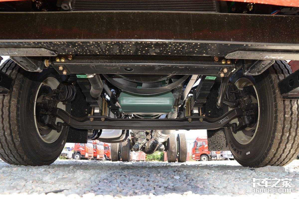 底盘方面,这款解放JK6采用F4N前轴,后桥为378铸造桥,4.875的速比。悬架形式上匹配的是前7后7+3的渐变式板簧设计,还有规格为275/80玲珑品牌轮胎及300L容积的铝合金油箱。