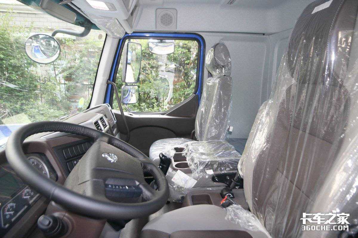 我们再看驾驶室,这款新乘龙M3采用悬置结构的第四代平地板驾驶室,再加上四维调节的主驾气囊座椅,其拥有着极为舒适的驾乘体验。在配置方面,该车方向盘集成有多功能按键,操作起来十分方便;中控台构造合理,其功能区偏向主驾一侧,也方便驾驶员进行盲操作。