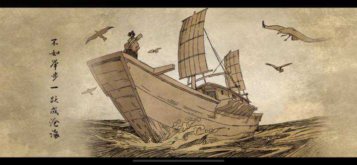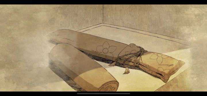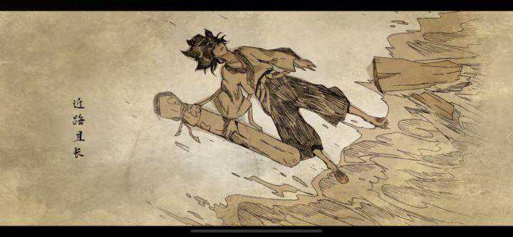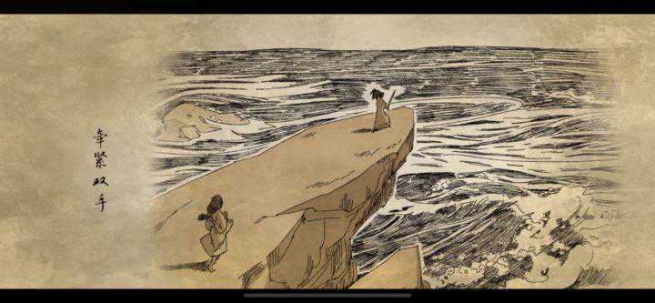 船被风浪掀翻,宫本被吹上岸,入境唐土,身旁是阿通拼死救出的两把刀: