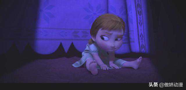 安娜翻了个身压在艾莎身上,手放在额头上说:“我睡不着,天还醒着,所以我也醒着。我们俩起来玩!”