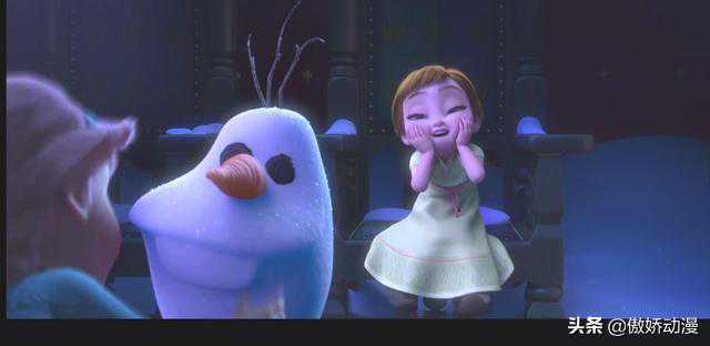 “你好,我是奥洛夫,喜欢热情的拥抱。”艾莎在雪人身后这样配音。