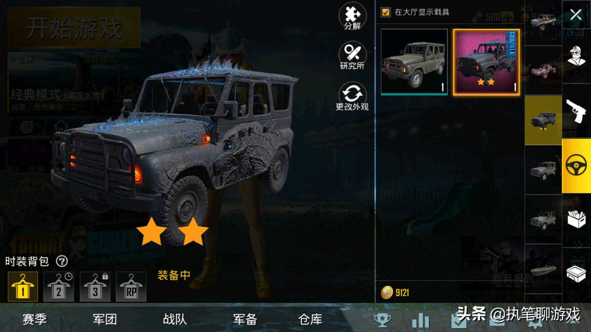 无论是《和平精英》还是国际服,吉普车其实是有3种不同外观的,只是一些粗心大意的玩家没有留意而已。这3种吉普车分别是:有车篷的吉普车、有软棚(帘子)的吉普车以及硬顶的吉普车!而这个哥斯拉升级吉普车皮肤仅能用在硬顶吉普车上才能进行“染色”,所以我们以后无论是在《和平精英》还是国际服里,但凡遇到载具皮肤一定要仔细观察其中的种类,就像轿车也分无顶轿车、硬顶轿车一样,所对应的皮肤才能成功的使用哦~这也算是一个粗心玩家会错过的“冷知识”吧~