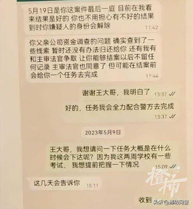 这起诈骗案,反诈中心也联系上了当事人,当事女孩遇到的诈骗套路是冒充公检法。骗子说她涉嫌洗钱案,要配合工作,后面就开始进一步恐吓并诱导转账。在骗子指导下,她跟妈妈说了签证过期等理由。