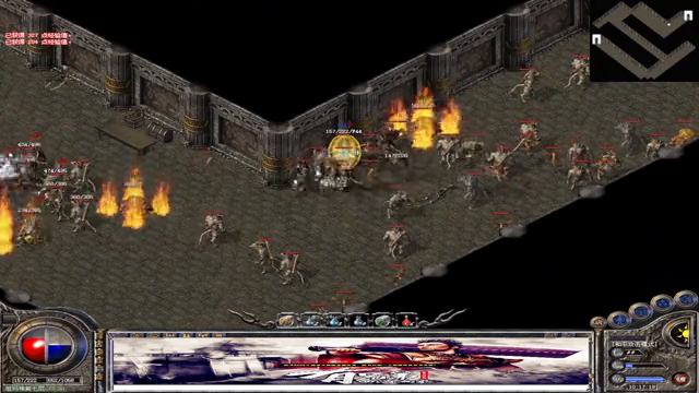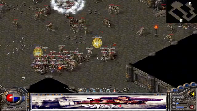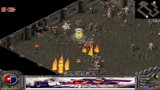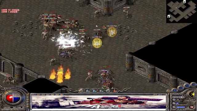 这边一大坨的怪,两个法师炸起地雷,炸起地雷光是相当的爽。这边直接开始捡药,蓝条已经空了,捡了一个到处都亏。现在在玩的同时还是一个小极品版本,小极品的点数可以加四点。玩过复古版传奇的朋友们和玩过小极品版本的朋友们应该都知道,这就是小极品版本的魅力。