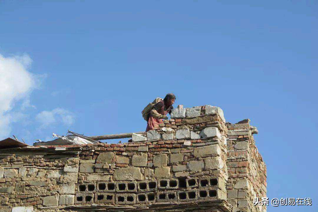 张素英不爱说话,每次见到她,不是在弄水泥,就是往楼上搬石头。张素英力气很大,尽管60岁了仍然自己一个人爬高搬石头,那一块大石头连小伙子都抱不动。搬好石头后,张素英用手当标尺,比划着把石头垒齐。她用碎石将大石块垫平,用砖头把碎石块敲紧,倒入稀泥填充缝隙,再用手把稀泥抹平,让石块黏在一起。和水泥、去瓦砾堆捡材料、往房子上堆石头……张素英日复一日地重复这些步骤,下雨下雪,过年过节都不停下。