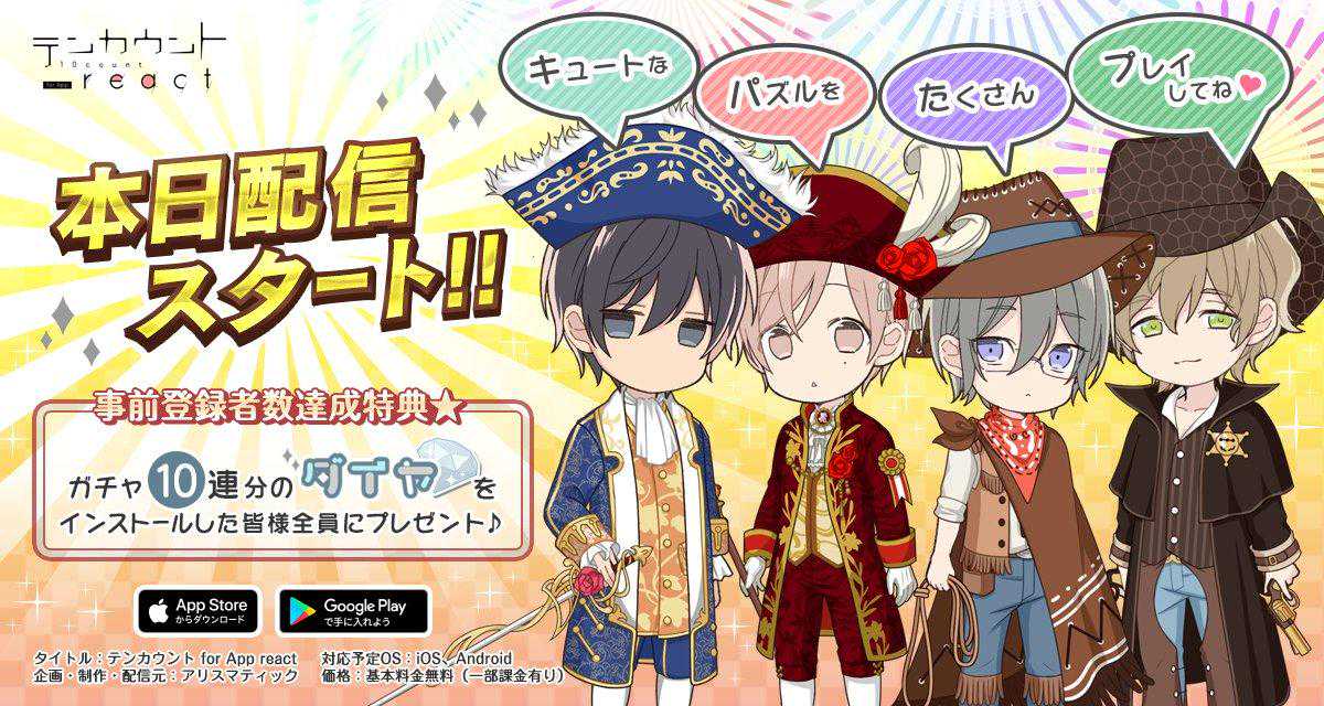 手机游戏《10COUNTforAppreact》是一款消消乐类型的恋爱模拟游戏。城谷忠臣(CV:立花慎之介)、黑濑陆(CV:前野智昭)、不破雅也(CV:佐藤拓也)、夏屋志姬(CV:松冈祯丞)4位主要角色将登场,登场角色的Q版头像将化身为可爱泡泡球,玩家可以通过消消乐游戏解锁限定插画和特别故事。根据官方最新公布的情报,该游戏的提前人数突破10万人,游戏内将发放可抽卡10次的宝石。另外,官方还公布了新年抽卡活动的部分SSR卡。