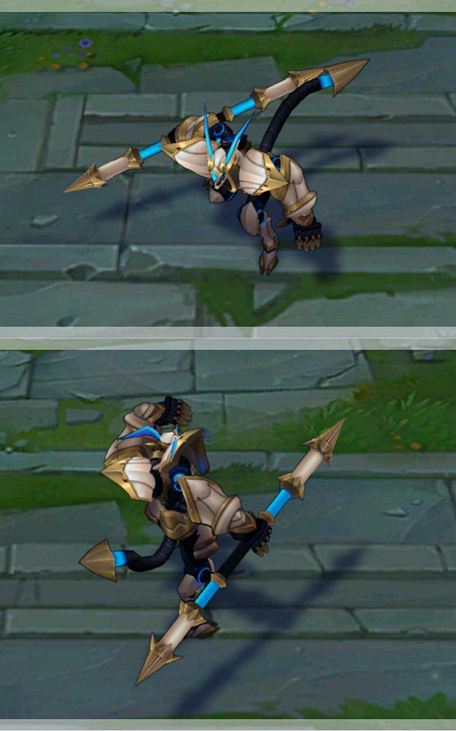 这两款枪骑,对比机器人那两款双生皮肤差的不是一点半点。无论是模型的设计还是整体配色。人马枪骑还好说,因为他是第一款,还在探索阶段,技能配色还是很棒的,外加人马本身这个英雄的模型就挺适合这个主题。做的好就是锦上添花,做的不好就是中规中矩,差不到哪里去。但猴子就真的是将这个系列的元素生搬硬套了。
