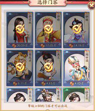 在门客的出战方面,大家可以派出5名50级以上的门客上场,每击败一个门客就会获取积分,最后比赛结束时会按照我们一共击败的门客总数来积分。