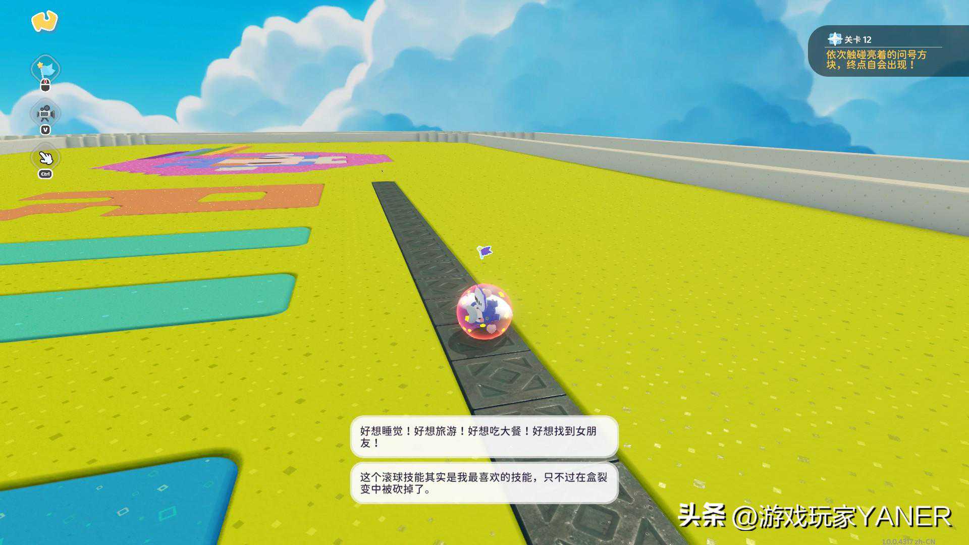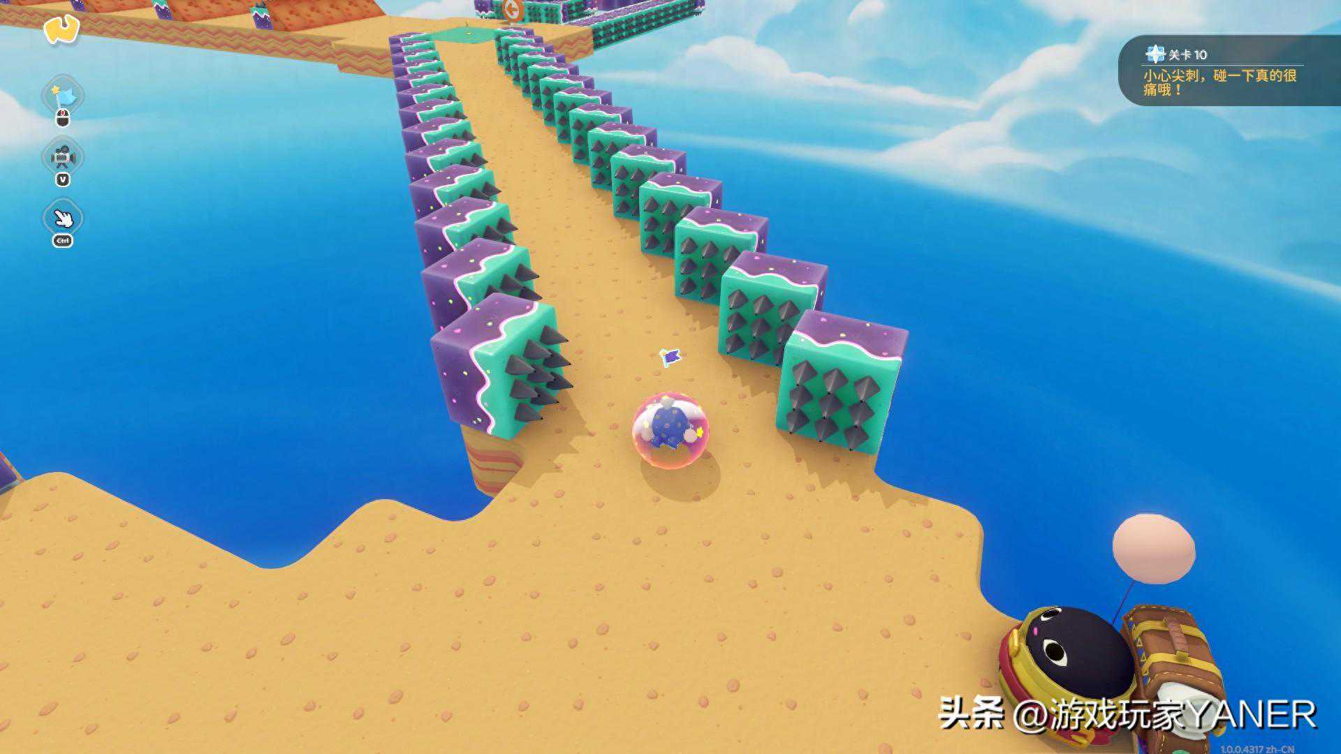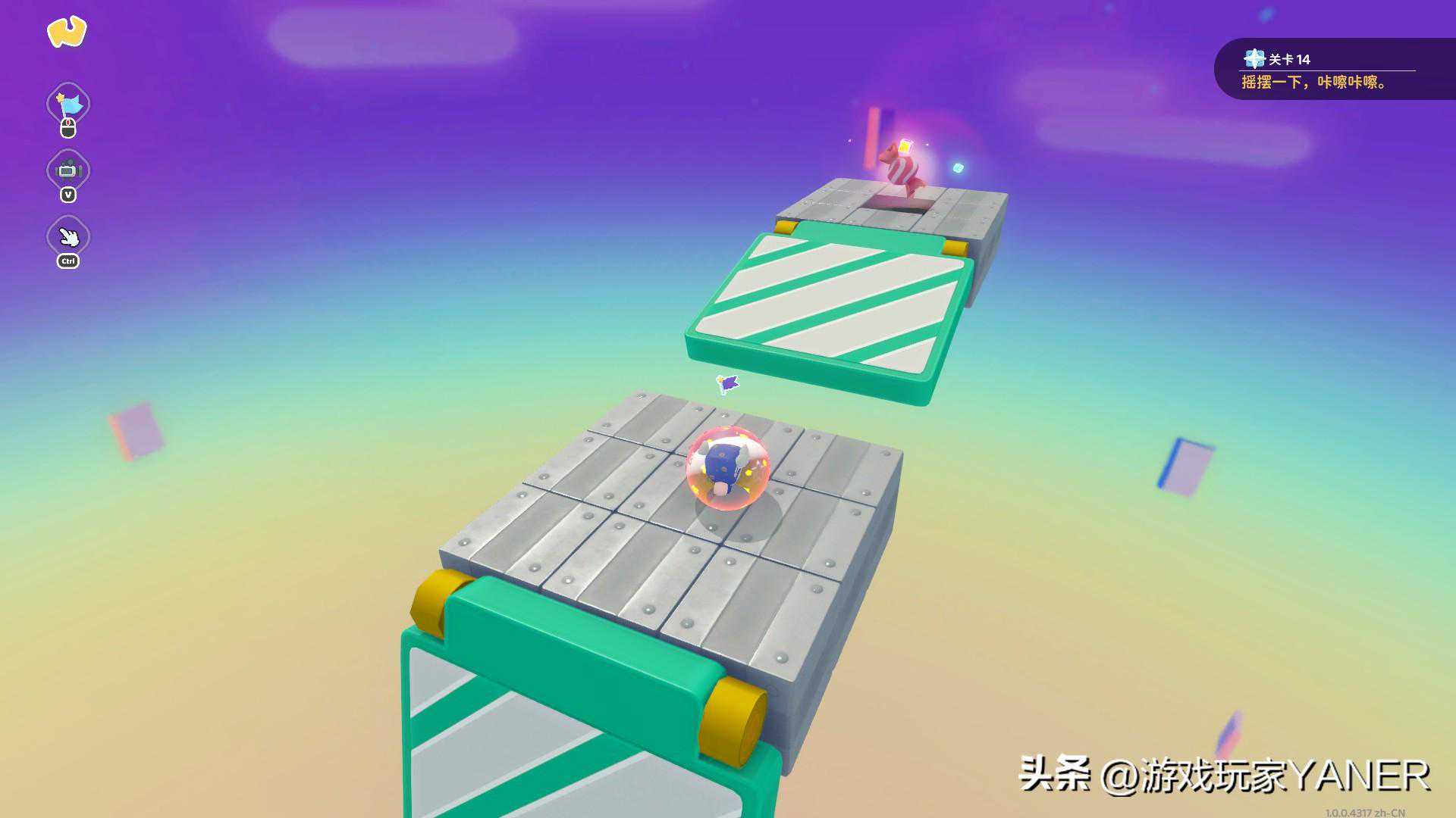 基于物理引擎设计的关卡机关也十分有趣,例如冲进去后会来回传送的快速传送通道,如果短时间来回快速传送还能冲上天空,以发射炮弹的形式落地从而拿到糖果或是到达终点的盒子,或是进入红色门传送到蓝色门,利用风力前进升空弹跳从而到达终点等等,偶尔遇到的文字提示也十分讨喜,比如终点离我就只有4格,但是我却够不到。
