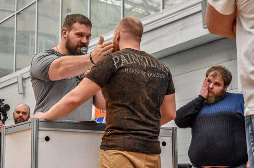 一张桌子,两个壮汉,每人轮流打出一巴掌,这个奇葩的比赛依然是我们无法理解的战斗民族发明的,中国古代也有类似的“文斗“,也就是每个人打对方一拳,直到一方倒下撑不住,耳光大赛可以说是现代另类版的文斗。