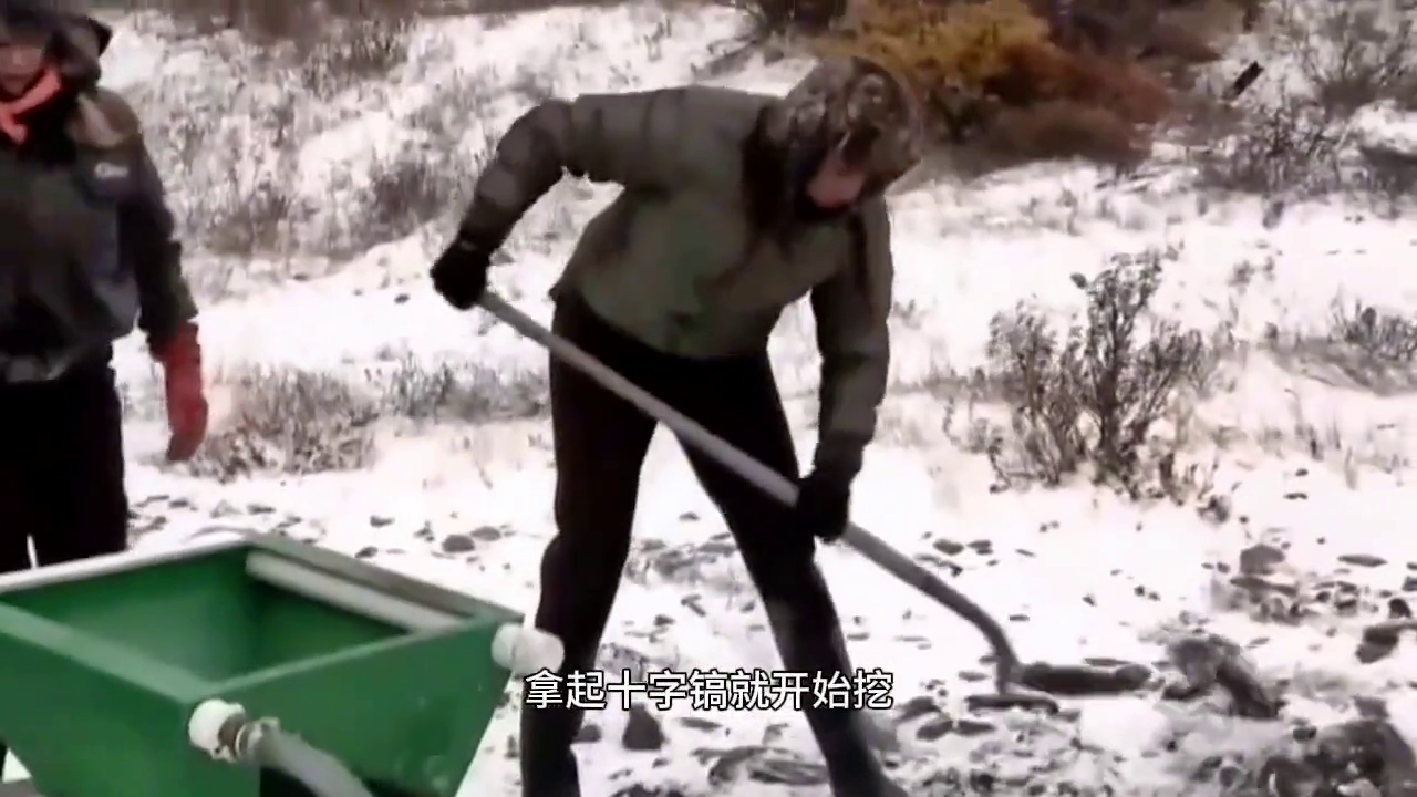 屏幕前的你学会了吗?莎拉珍他们开始了一天的淘金工作。今天他们要在河流下游学习高台采矿法。这可不简单,得把石块和泥土放进料斗,再用高压水冲洗,把黄金塞进流矿槽。半个小时过去了,地上的冻土才挖了一点点。马克看不下去了,拿起十字镐就开始挖。莎拉珍他们也赶紧跟上,淘金工作总算有了点进展。