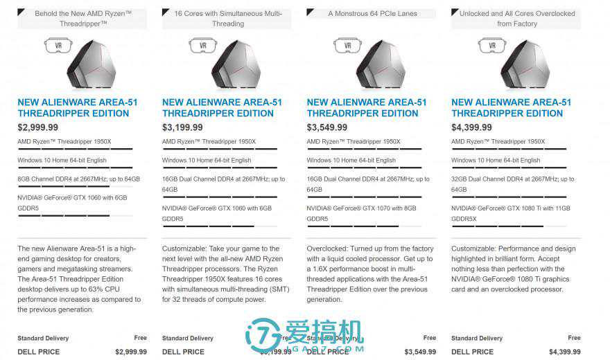 此前戴尔就与AMD合作,宣称高端的Ryzen9即THREADRIPPER的处理器将由游戏品牌外星人独占,如今在E3大展上亮相的外星人Area-51R3游戏主机正式开卖,最大的亮点自然就是独占的RYZENTHREADRIPPER处理器了。