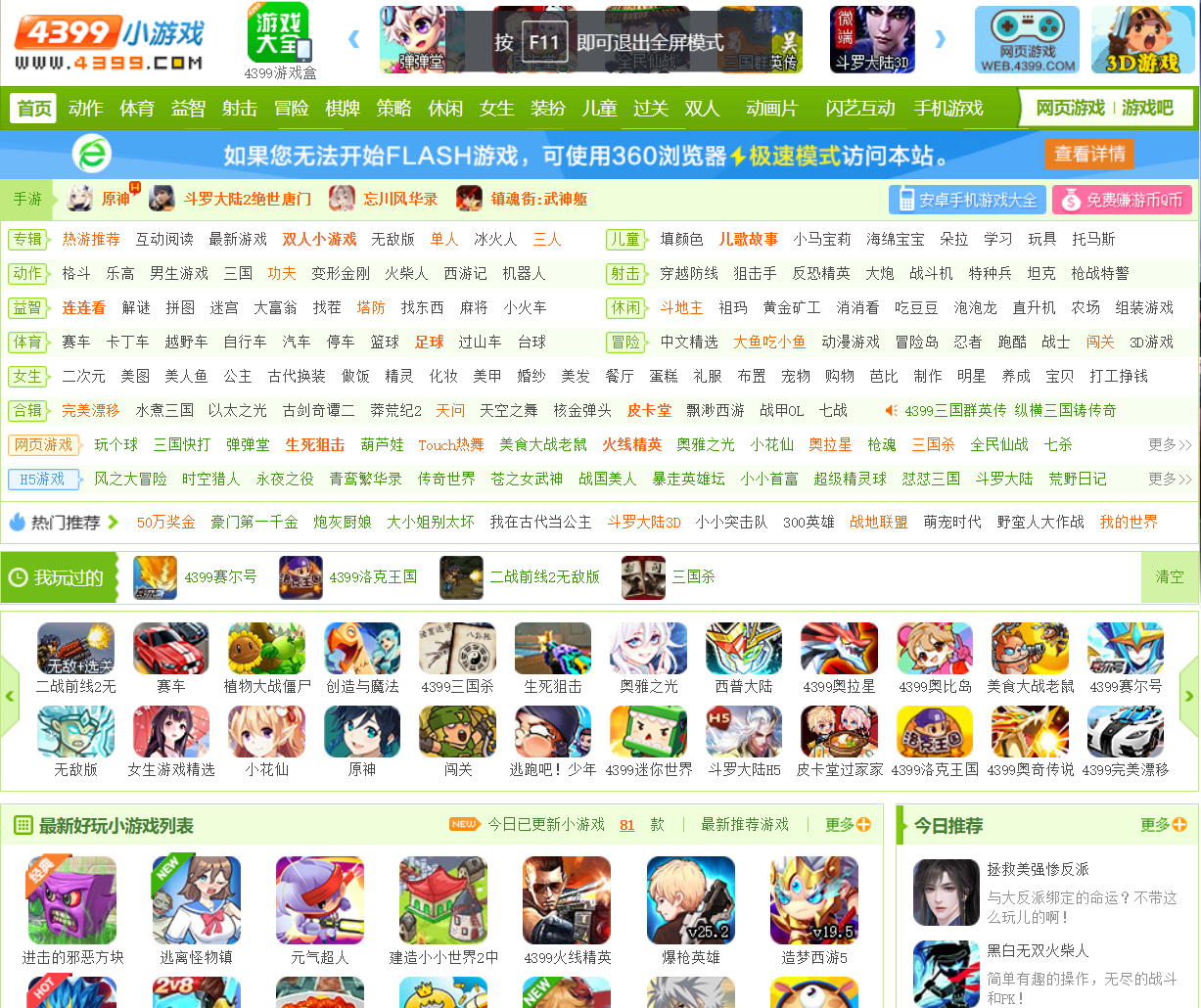 而现在再打开4399小游戏却发现当年的很多小游戏都因为一条“净化网络环境,关于不良游戏内容处置声明”的一则公告被平台下架了,平台还存在的那些印象中的游戏也因为身边没有了当年一起打打闹闹的玩伴而变得没了意思。