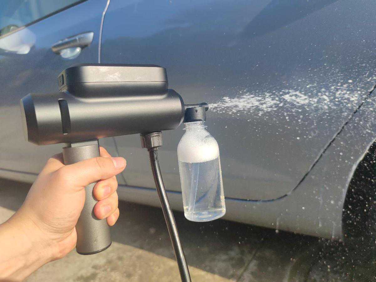 小猴锂电折叠洗车机的泡沫壶也非常给力。它能够充分乳化起泡,带来超出预期的丰富泡沫。这些泡沫不仅能够更好地覆盖车身,还能够深入清洁车漆表面的污垢和油脂,让车身焕然一新。