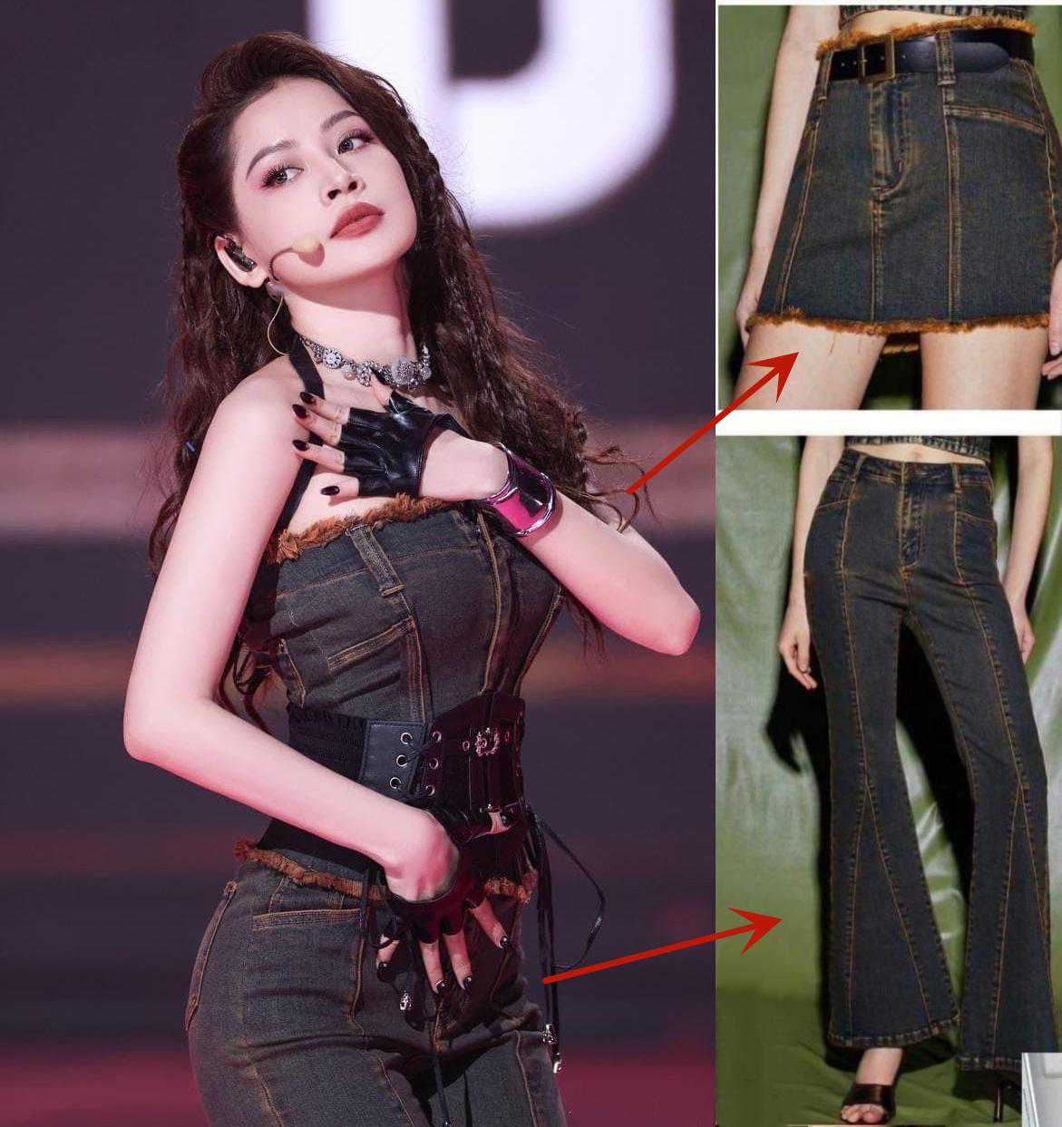 但其实,演出服是节目组准备的,给到芝芙的只有这条棕色牛仔裤,造型师根本找不到合适的上衣进行搭配。