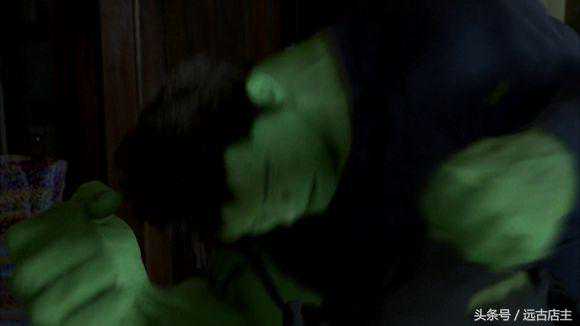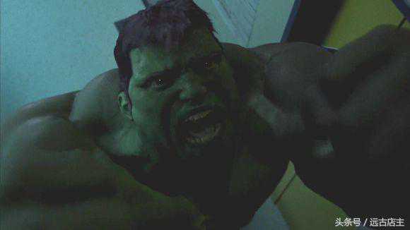 已经接受浩克力量的布鲁斯,瞬间眼睛变成了绿色,随着整个亚马逊丛林的情景,我们听到了浩克的咆哮,这时我们可以发现,那个人变成了浩克..