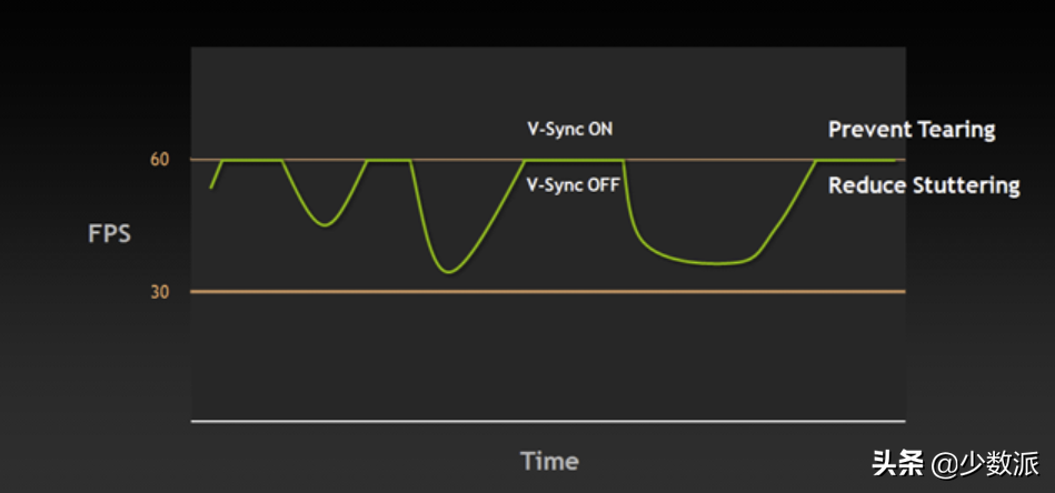 在以前就有一项技术能减少卡顿和撕裂带来不适影响,也就是「垂直同步」。在简单环境下,如果示器还在显示前缓冲,这时显卡画好了后缓冲,垂直同步会禁止显卡进行绘图,直到显示器把前缓冲的画面显示完整,交换前后缓冲区的名字以后,显卡就会继续渲染了。如果你是60Hz的显示器,打开垂直同步以后画面就会锁在60帧了,144Hz打开垂直同步以后画面就会锁在144帧。
