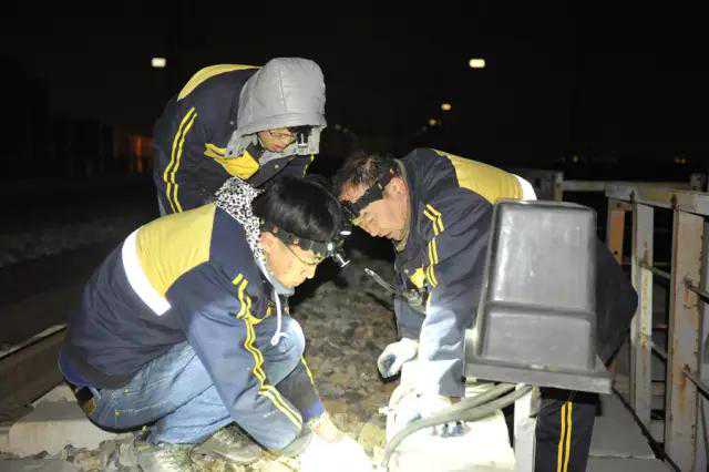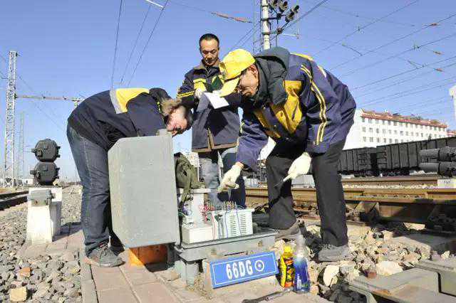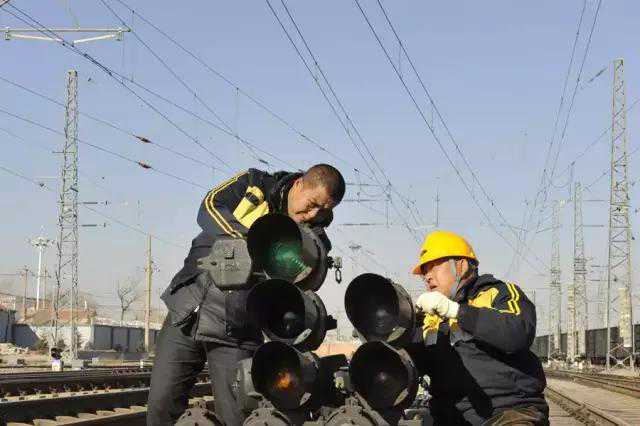 师傅们认真对机车信号设备进行检查整治,确保性能良好。