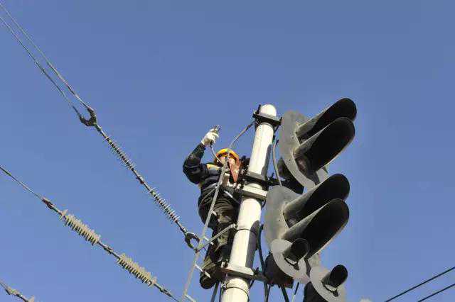为了确保信号安全性,他们登上高柱信号机认真检修高柱信号机线路。