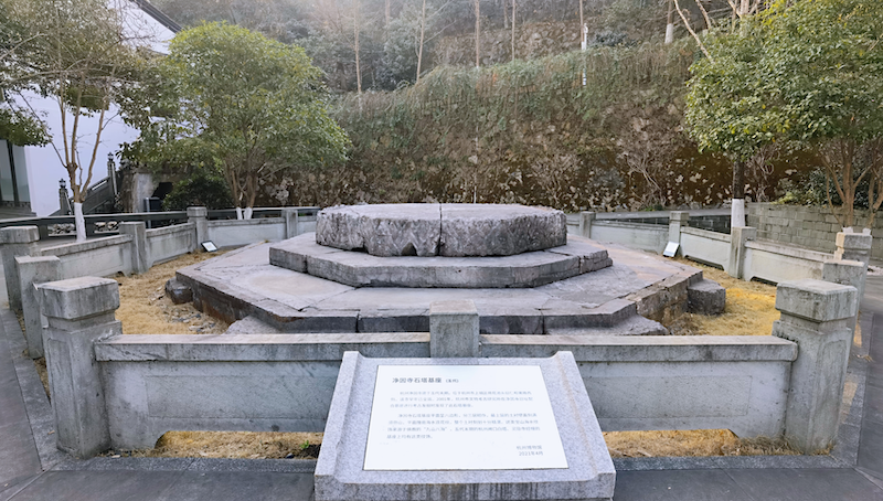 净因寺石塔遗迹露天陈列于杭州市中心吴山脚下、杭博户外的北馆广场之上,供观众往来参观凭吊。