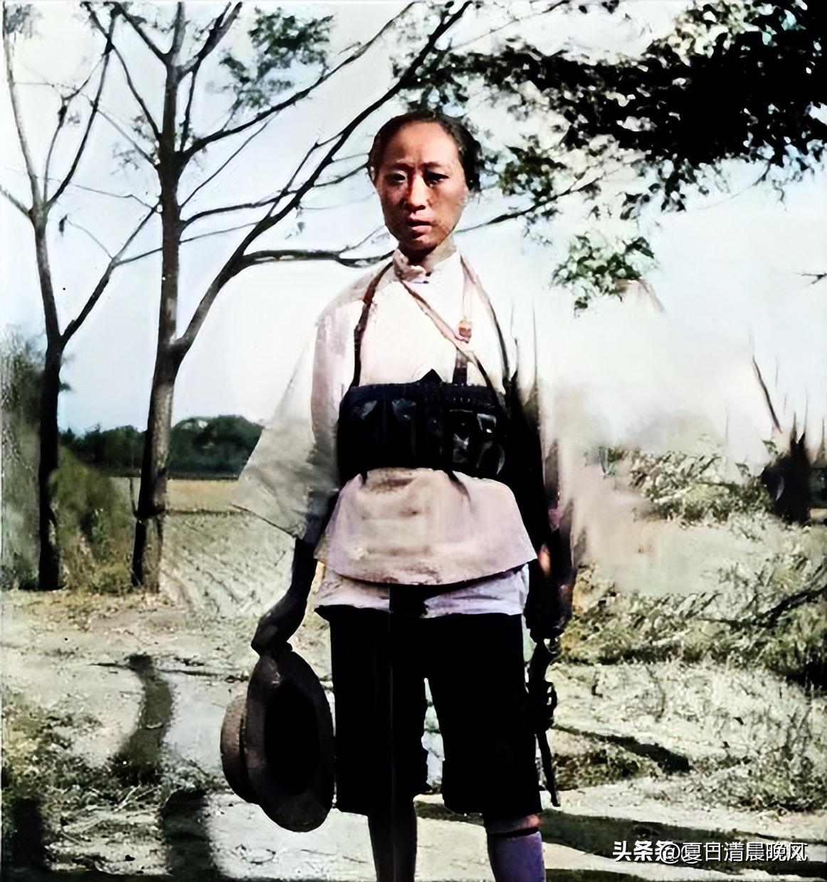 中国东北,这位年轻女子,英姿飒爽,身上绑着子弹袋,一手拿着草帽