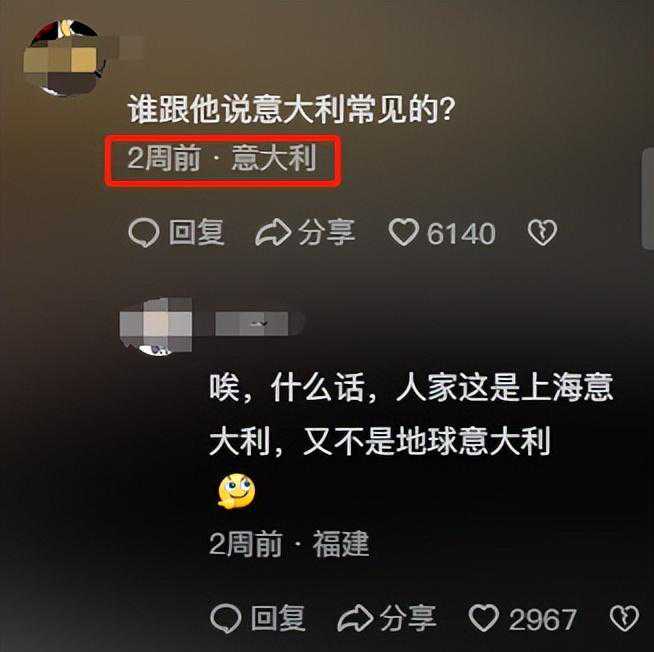 另一位网友回复:什么话,人家这是上海的意大利,又不是地球的意大利。