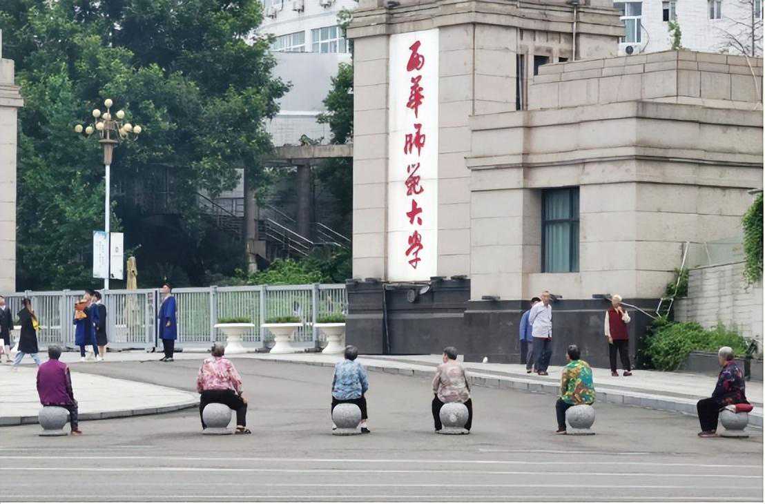 西华师大门口一共六个石墩子,六个老太太一人坐一个,整体画面非常和谐。