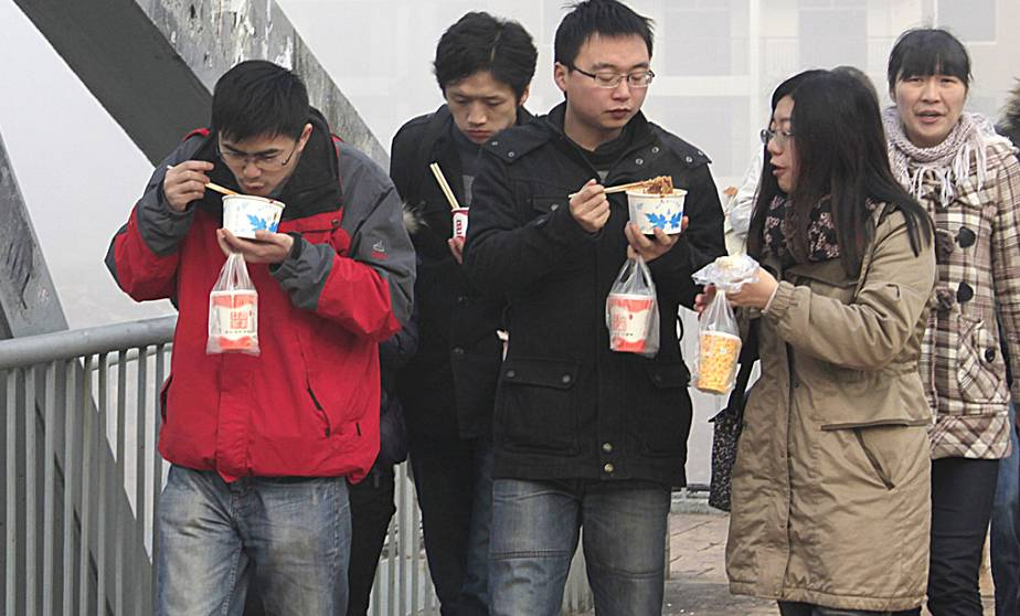 画面感太强了,边走边吃好像是武汉人的必备技能,但是他们纯纯为了赶时间。