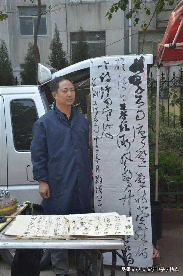 一边卖肉一边练书法