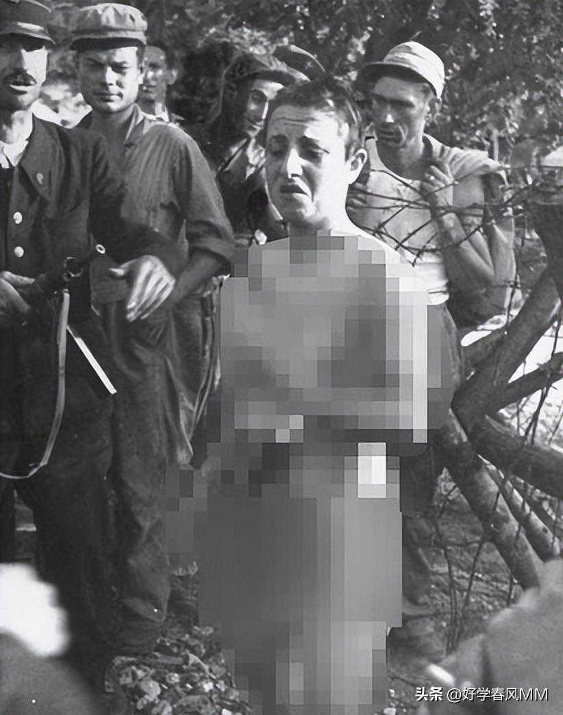 01这是1945年,一名法国女人被脱光衣服游街的照片。