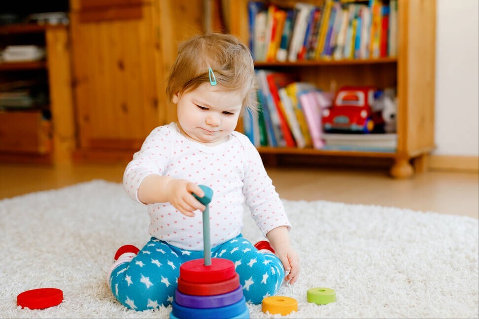 比如套圈游戏,这是让孩子把圈套在一根柱子上,要先套大圈,再套小圈。这个游戏锻炼了孩子的观察能力,双手的配合能力。孩子用眼睛观察,用小手进行选择并且把圈套好,这个看似简单的动作,其实都是孩子手眼脑协调配合的结果。这对于孩子的分析判断能力是一个很大的提升。