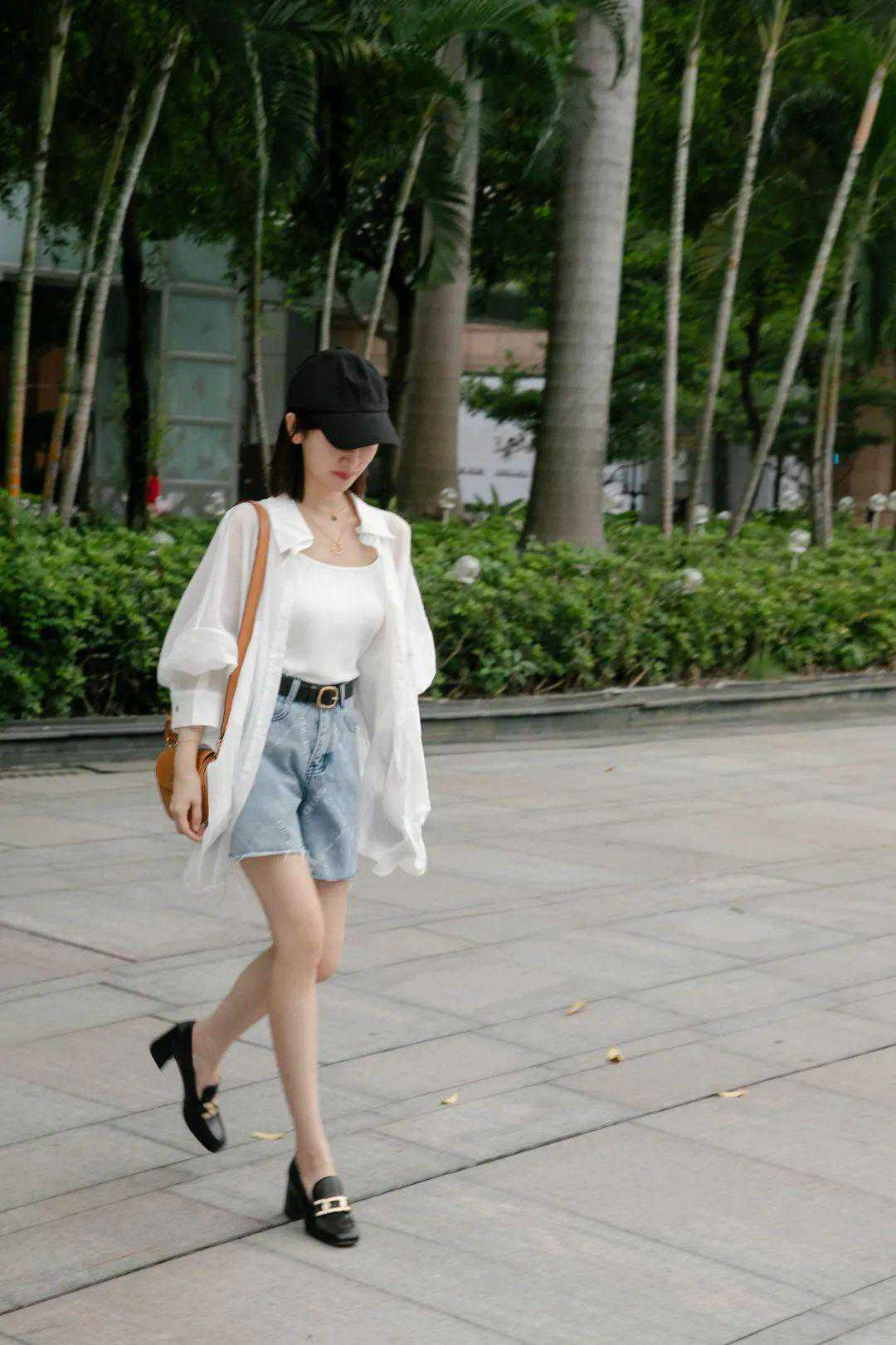 短裤我喜欢选宽裤管、长度在膝盖上方几厘米的,舒服的同时又能遮肉,还很显腿细。▼