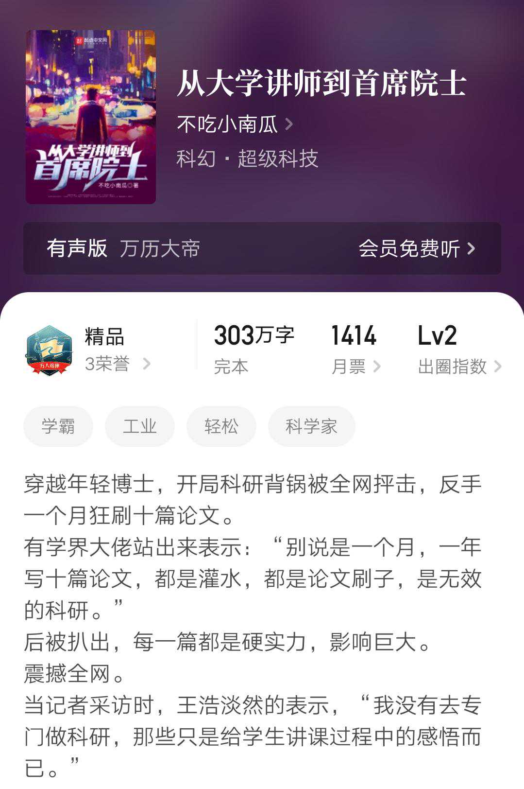 不吃小南瓜的这本学霸黑科技文在今天完结了,三百多万字还是不少的,成绩也非常不错,万订以上。