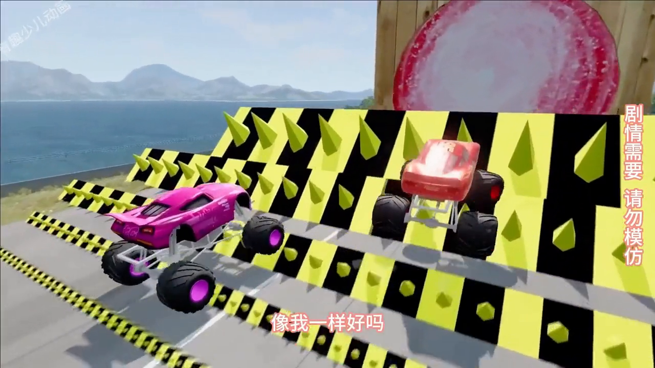 这一关又有超级无敌大漩涡了,麦昆车又开始出发,可惜它太小了。它到了沙漠地带,堆鸟不拉屎的地区,一下就被另一辆车弹飞了出去,重重地摔在了地面之上,摔得已经面目全非了。再看小绿车,冲,不出意料的,它跟前面那个是一样的结果。