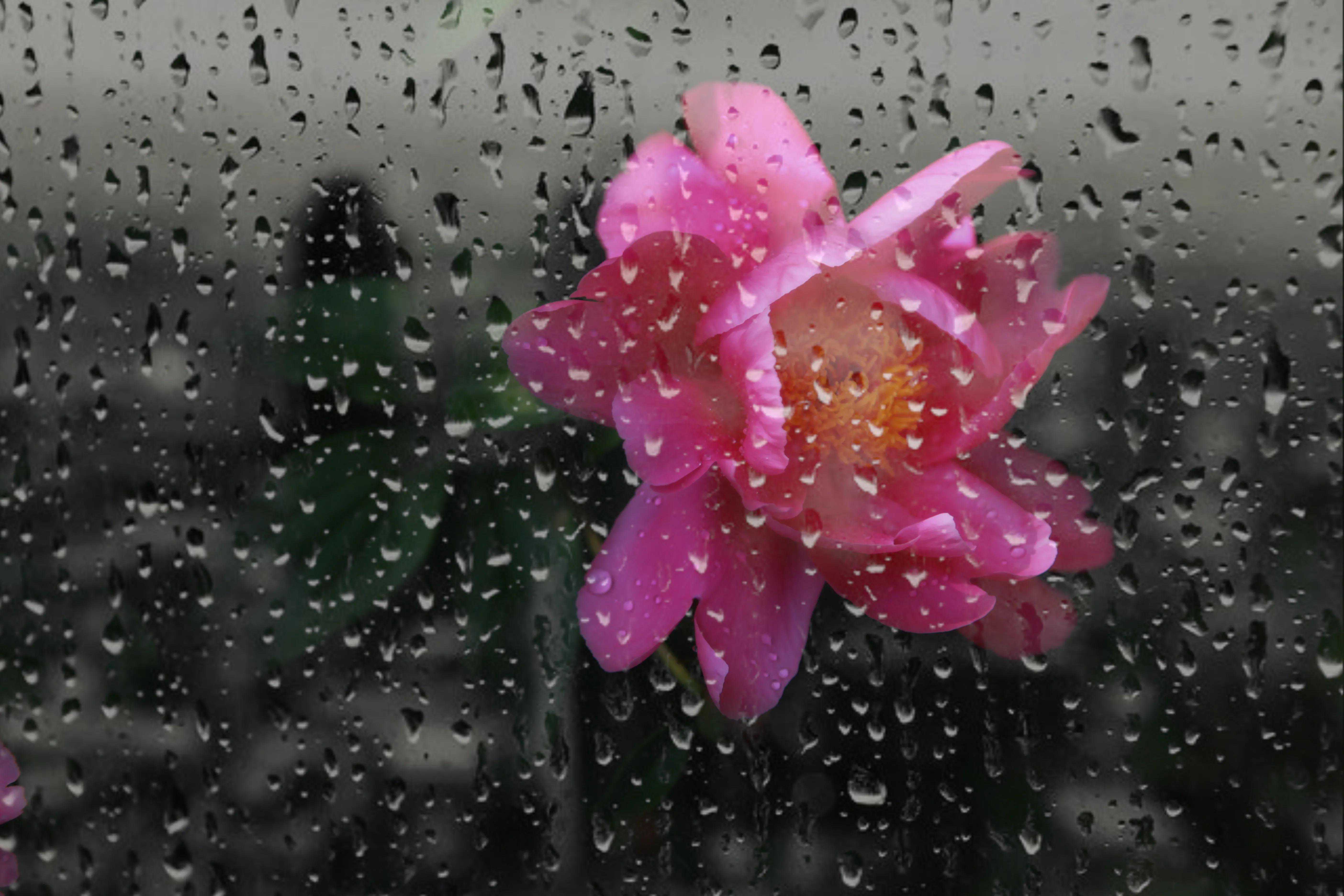 朦胧雨珠似面纱。